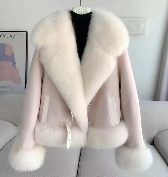 معطف صوف وفرو فاخر للخريف والشتاء