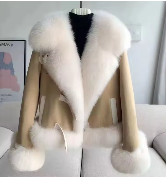 الصفحة الرئيسية اثاث معطف صوف وفرو فاخر للخريف والشتاء